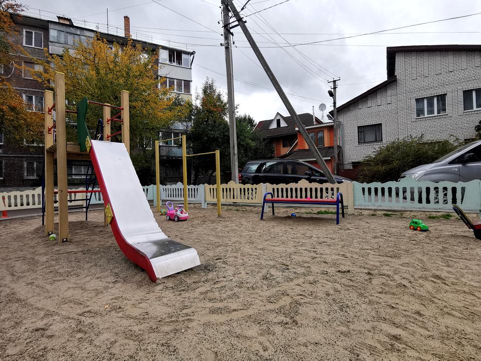 5.У будинку працює ліфт, встановлено відеоспостереження, облаштована прибудинкова територія з дитячим майданчиком і двома зонами паркування;