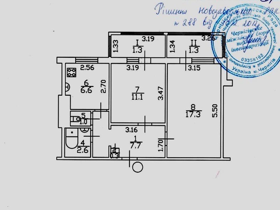 Кімнати - 17,3 м2 і 11,1 м2