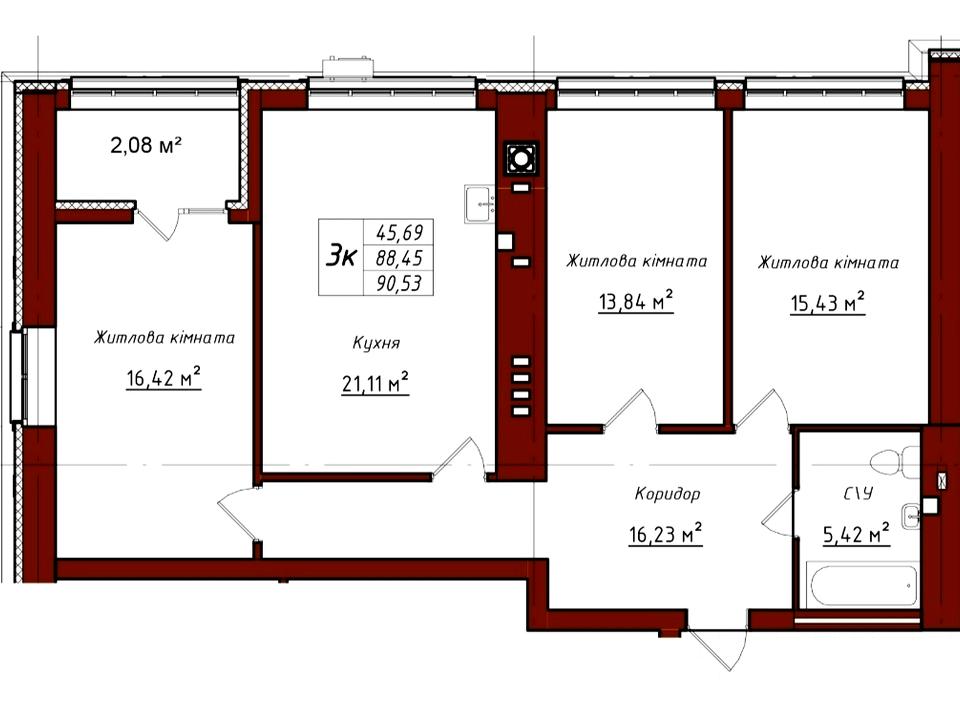 В квартирі 3 кімнати, Технологія будівництва - Цегляна. Планування кімнат Роздільне. Є газ. Будинок побудований в 2024 році. Загальний стан квартири - Без ремонту. Гаряча вода - газовий котел. Без комісії