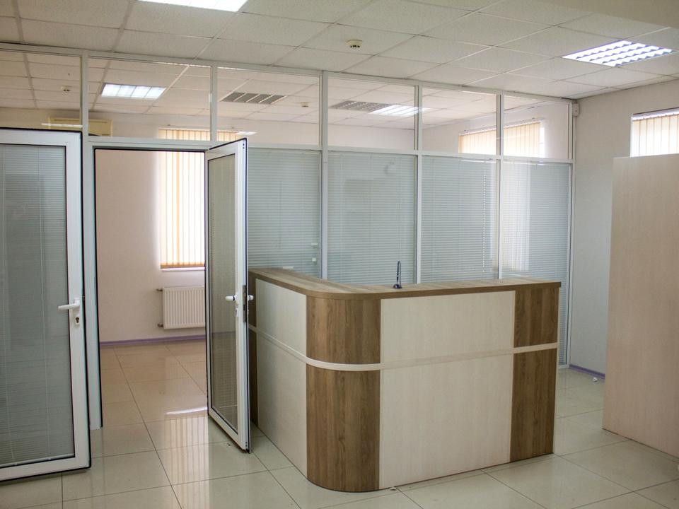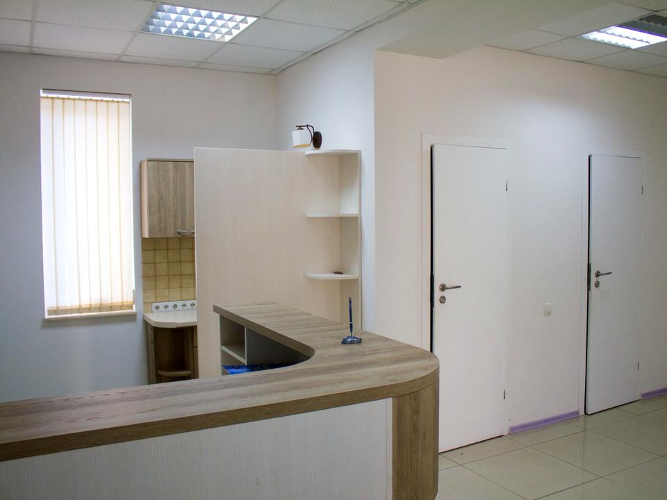 Ремонт виконаний у сучасному офісному стилі, фасад оформлений стильно та респектабельно.