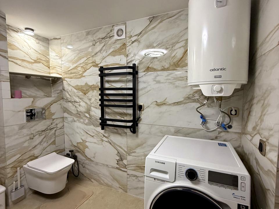 В квартирі 2 кімнати, висота стелі 2.40 метра, Технологія будівництва - Цегляна, Тип будинку - Спец. проект. Немає газу, кухонна плита електрична. Немає балкона. У квартирі є Телевізор, Супутникове ТБ, Підігрів підлоги, Кондиціонер, Пральна машина, Ванна, Холодильник, Мікрохвильовка. Будинок побудований в 2021 році. Загальний стан квартири - З ремонтом. Безбар'єрність: дверні отвори в будинку шириною понад 0.9 м. Гаряча вода - електричний бойлер. Кількість санвузлів: 1. Інтернет оптоволоконний. Працює без світла - вода, інтернет. Тип кухні - кухня-студія. Кількість спален: 1. Комісія за послуги 400 $