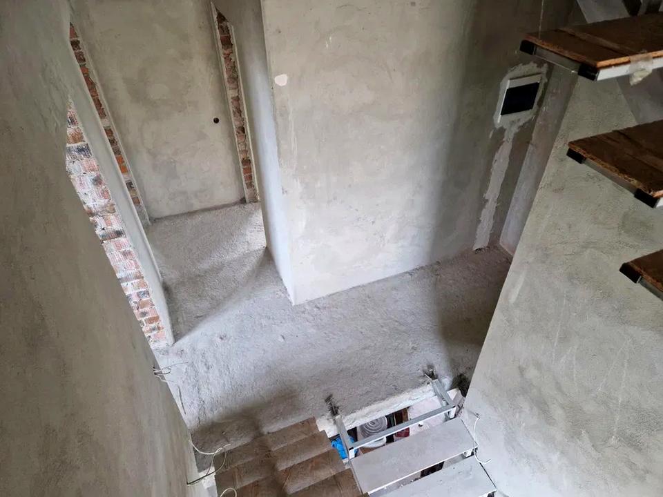 Утеплений фасад, змонтовано конструкцію під сходи, заведено комунікації, електрика по всіх поверхах.