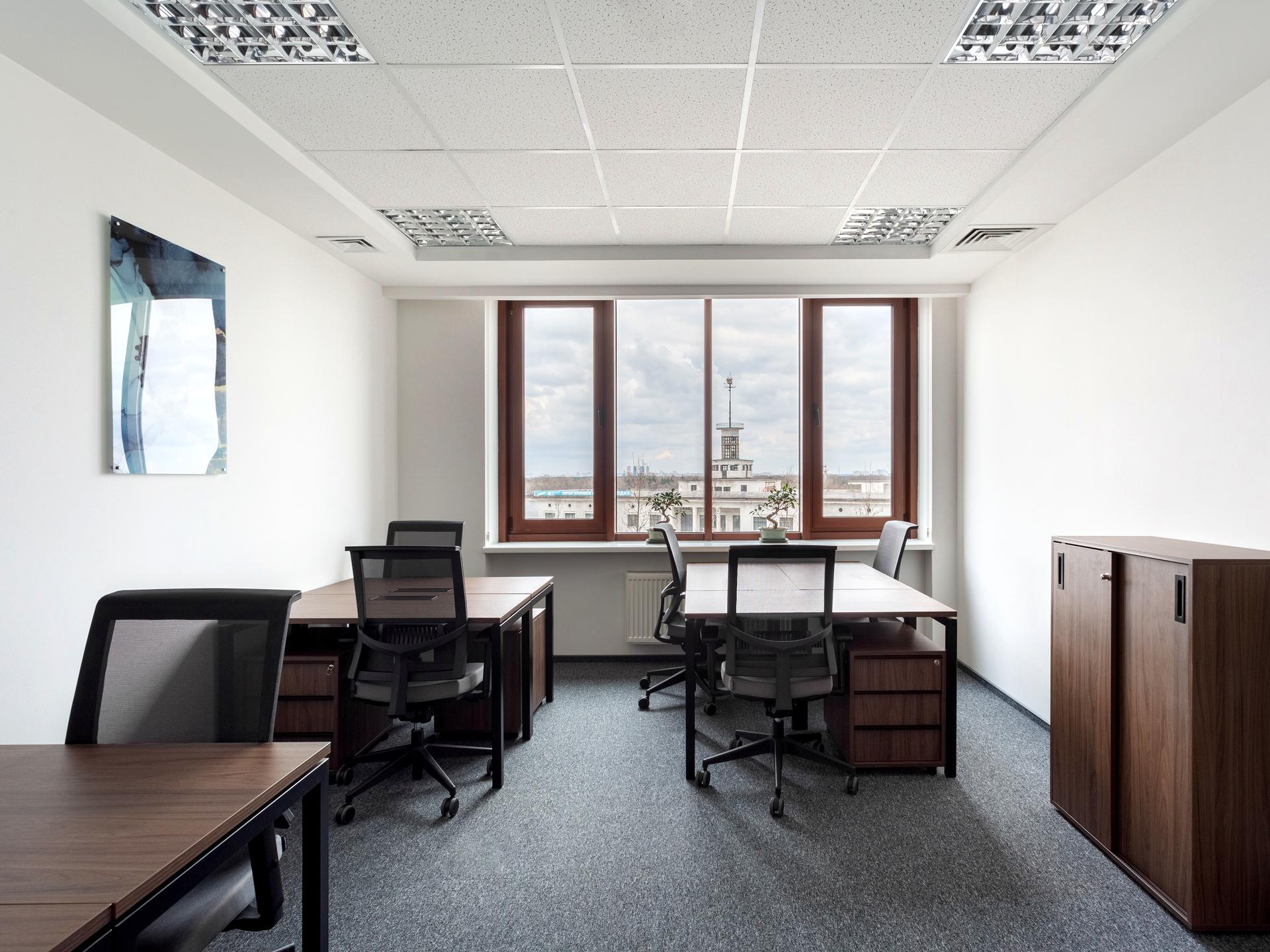 * Примітка: Ціни вказано без урахування ПДВ та дійсні за умови підписання договору оренди строком на 12 місяців. Пропозиція включає 100 м² приватного офісу та 165 м² спільних зон бізнес-центру. Усі зображення в цьому оголошенні належать нашим бізнес-центрам, але можуть не відповідати певному бізнес-центру.