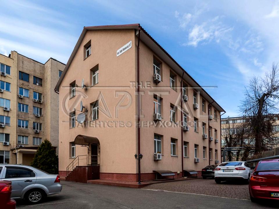 Пропонується в оренду окрема трьохповерхова будівля площею 851 м², розташована на території державної установи за адресою: м. Київ, вул. Софії Перовської, 10Б.