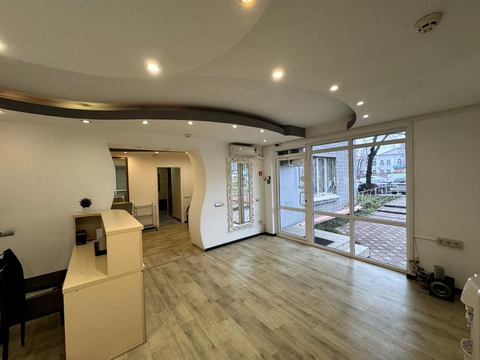 Об'єкт комерційної нерухомості, Приміщення в житловому будинку, Приміщення для надання послуг. Об'єкт на 1 поверсі, У будівлі 5 поверхів. Під'їзд до будівлі - асфальт. Є електрика. Холодна вода - водопровід, гаряча вода - централізована. Опалення центральне. Є санвузол. Сантехніка в нормальному стані. Централізована каналізація. Сигналізація. Будинок побудований в 1963 році. Кондиціонер. Поруч є зупинки, супермаркет, відділення банку, кафе. Документи на об'єкт нерухомості: договір купівлі-продажу. Сантехніка в нормальному стані. У приміщенні 4 кімнати. Комісія за послуги 50 %