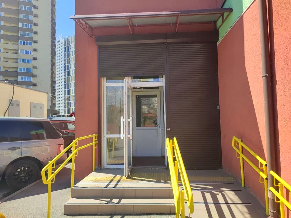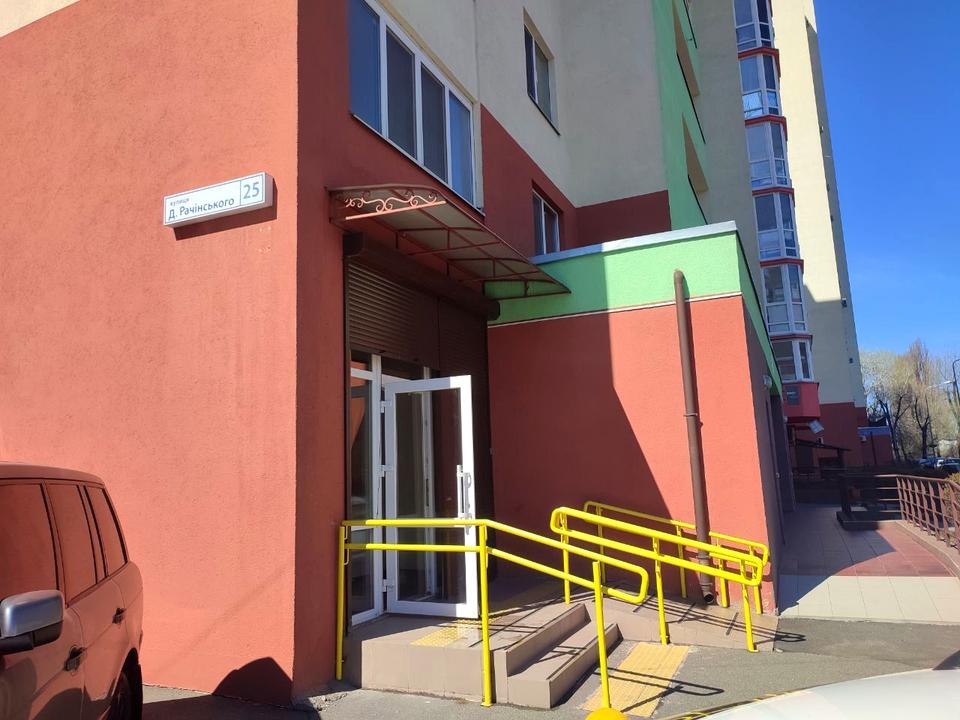Оренда фасадного приміщення загальною площею 76 м², окремий вхід з фасаду, на 1 поверсі 24 поверхового будинку. Нежитловий фонд ,приміщення двостороннє, 2 зали суміжні 39,4 і 29,7м², санвузол. Гарний ремонт, на підлозі плитка, вікна склопакети, всі комунікації. Э пандус.