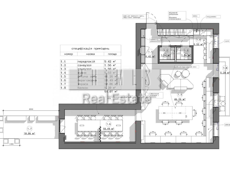 - кімната для перемовин на 8 осіб (або 4 особи 1 керівник);