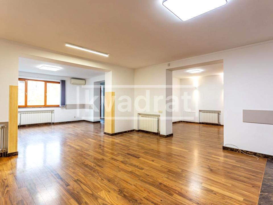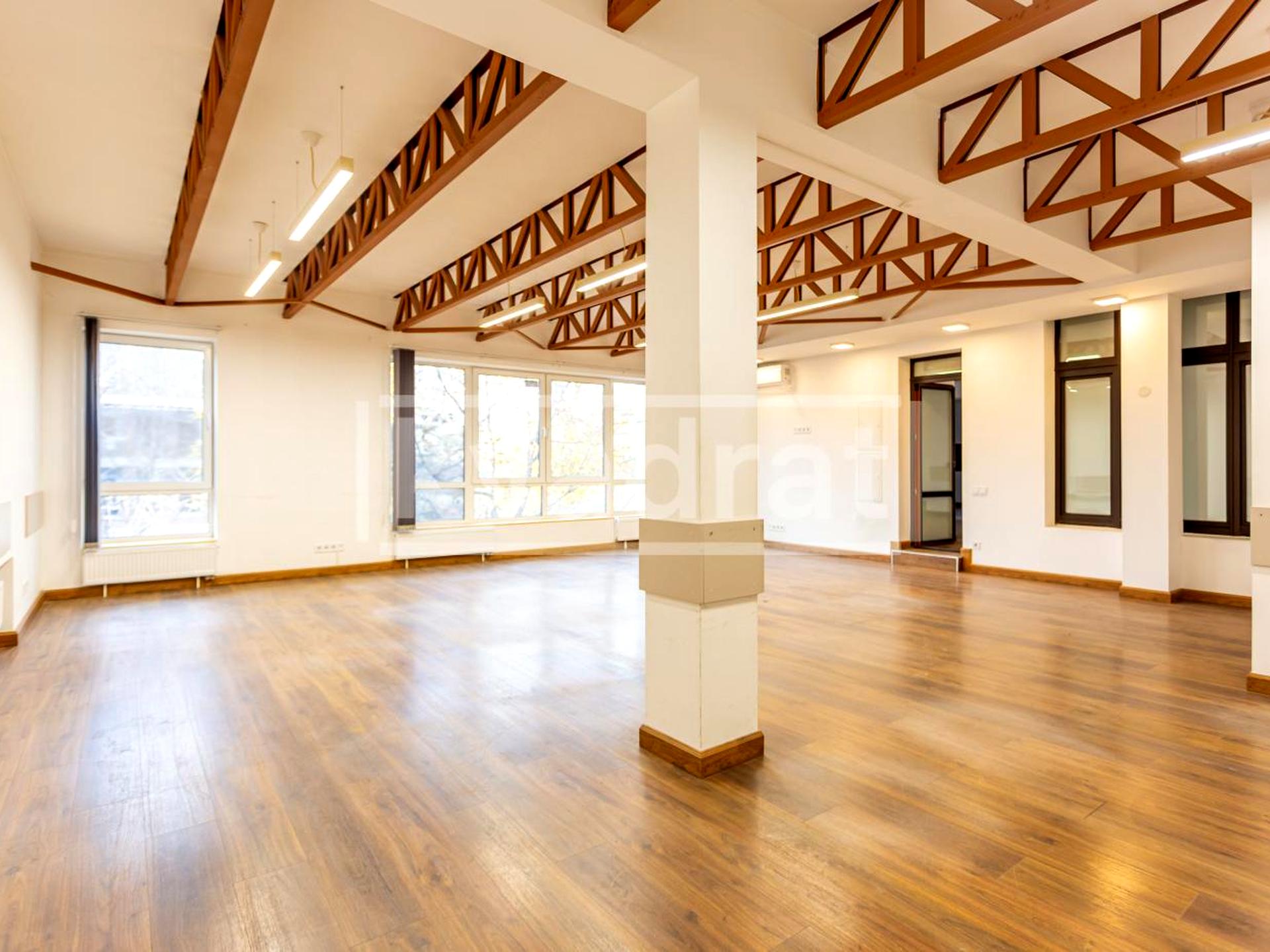 Площа офісу - 550 м². Розташований в окремо стоячій будівлі з власною закритою територією, з підземним паркінгом, бомбосховищем та зручною парковкою просто біля входу в приміщення.