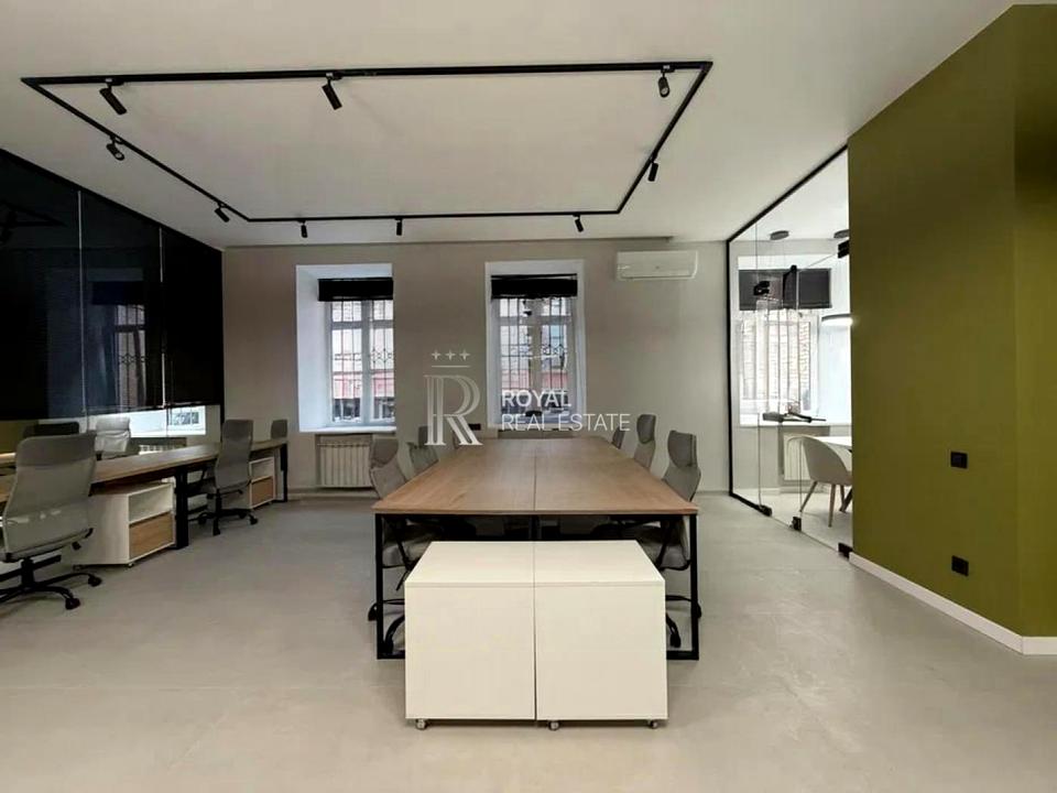 Пропонується в оренду сучасний офіс площею 74,6 м на 1-му поверсі історичного цегляного будинку в престижному районі — вул. Володимирська, 81-Б, Голосіївський район. Друга лінія від дороги, тихе подвір’я з вільною парковкою (без закріплених місць).