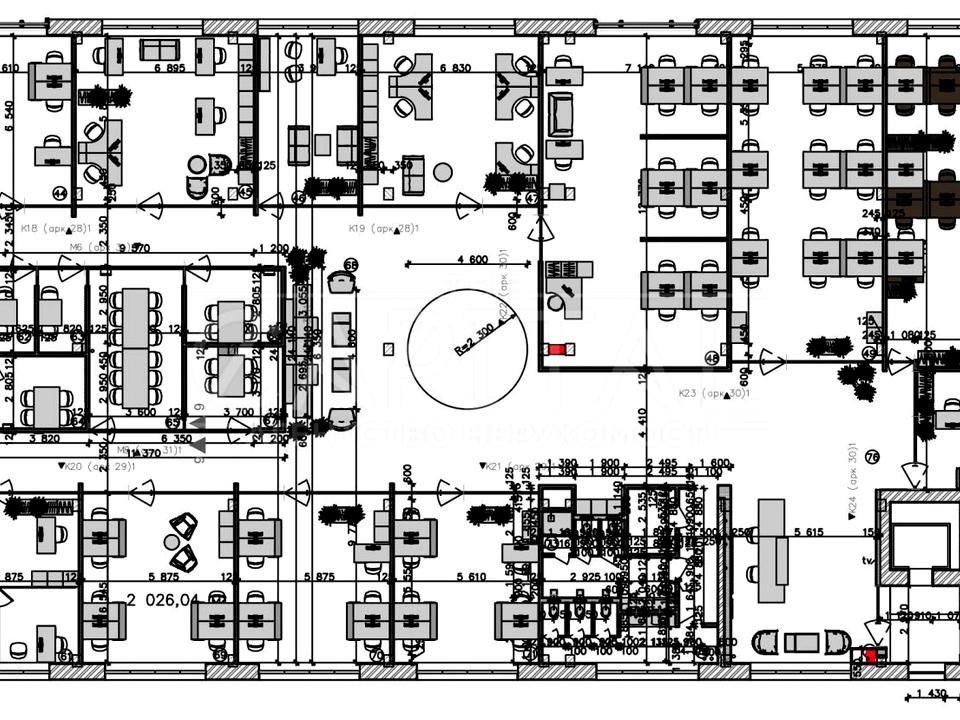 Офіс має кабінетну систему (13 кабінетів + хол+ рецпція+кухня)