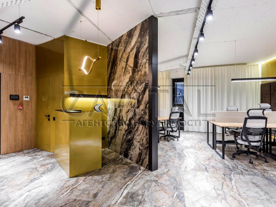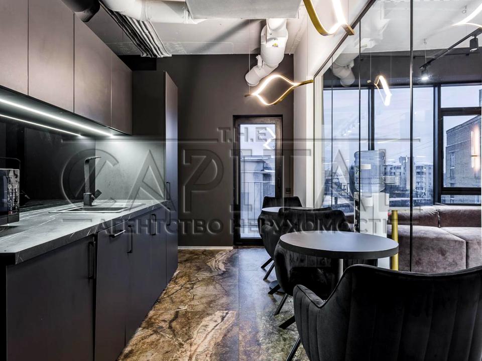 Офіс розташований на 3 поверсі. Стан приміщення: новий сучасний дизайнерський ремонт із застосуванням нових технологій дизайну. Офіс повністю укомплектований сучасними якісними меблями. На кухні є вся необхідна для офісу техніка: холодильник, плита, мікрохвильова піч, чайник. Бойлер. Система кондиціювання, клімат-контроль. Будинок має цілодобову охорону та відеоспостереження. Прекрасне місце розташування офісу: зручна транспортна розв'язка і все необхідне для успішного бізнесу.