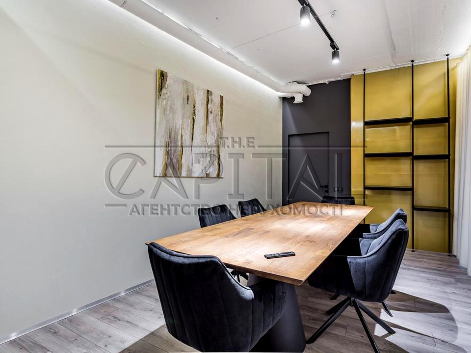 Офіс розташований на 3 поверсі. Стан приміщення: новий сучасний дизайнерський ремонт із застосуванням нових технологій дизайну. Офіс повністю укомплектований сучасними якісними меблями. На кухні є вся необхідна для офісу техніка: холодильник, плита, мікрохвильова піч, чайник. Бойлер. Система кондиціювання, клімат-контроль. Будинок має цілодобову охорону та відеоспостереження. Прекрасне місце розташування офісу: зручна транспортна розв'язка і все необхідне для успішного бізнесу.