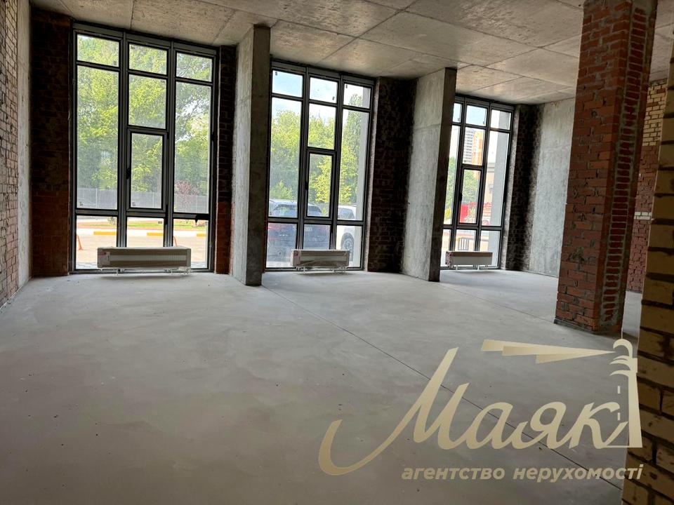 Приміщення розташоване на першому поверсі та має два окремі фасадні входи. Завдяки великим панорамним вітринам простір отримує багато природного світла та чудово проглядається з вулиці. Приміщення належить до нежитлового фонду й передається після будівельників: виконана чистова стяжка підлоги, стіни з цегли, бетонна стеля. Висота приміщення становить 4,5 м, що дозволяє реалізувати різні планувальні рішення. Усі комунікації вже підведені — вода, електрика, вентканали та опалення.