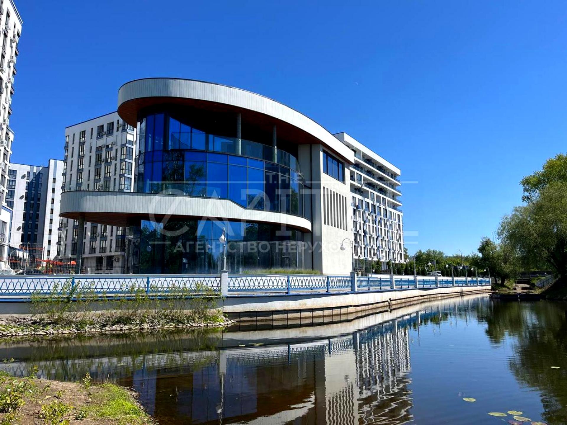 Нова будівля, побудована на березі озера.