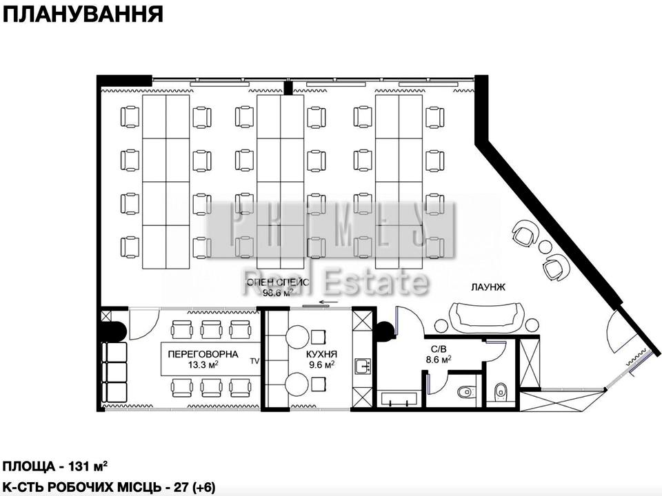 Загальна площа приміщення 131 м2.