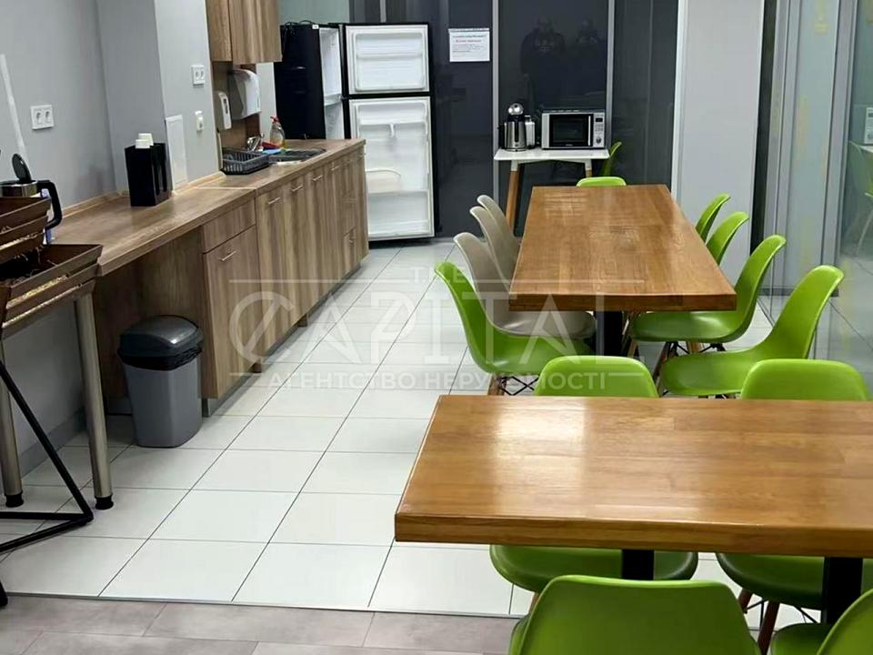 Меблі: Офіс оснащений всіма необхідними меблями, зокрема офісними столами, кріслами, меблями для переговорних кімнат, кухнею з меблями, двома холодильниками, кавоваркою та мікрохвильовою піччю.