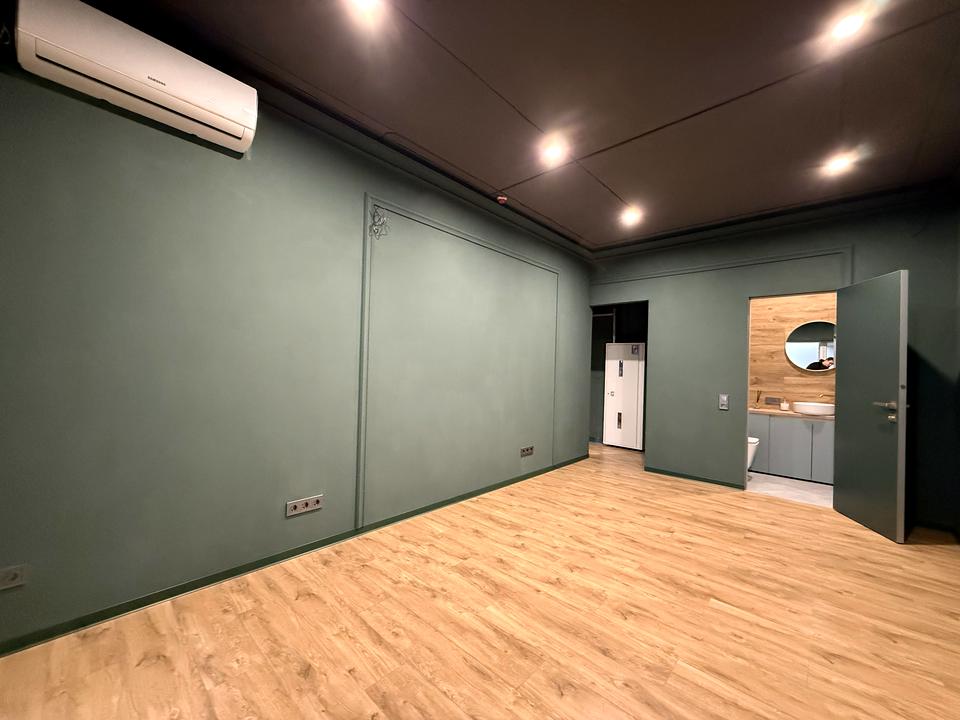 дизайнерський ремонт в приміщенні 40 квадратних метрів яке поділене на дві частини та 2 сан-вузли зі всіма комунікаціями на цокольному поверсі сучасного будинку Н'юкасл, ЖК Нова Англія, є кондиціонери, опалення централізоване (в жк власна котельня), Бойлери 80 літрів, ОПЕРАТИВНИЙ ПОКАЗ.