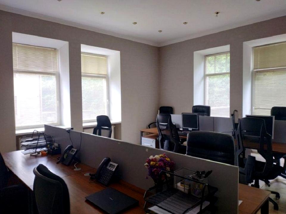 Оренда офісу 135 м2 на Подолі, вулиця Воздвиженська. Другий поверх, житловий фонд, усі сусіди – офіси. Планування - дві зони open space, кабінет, зона ресепшн, обладнана кухня, два санвузли. Офісний євроремонт, повністю мебльований. Індивідуальне опалення, кондиціонери, пожежна сигналізація. Одне паркомісце у дворі.