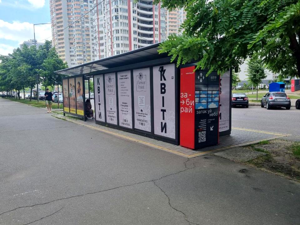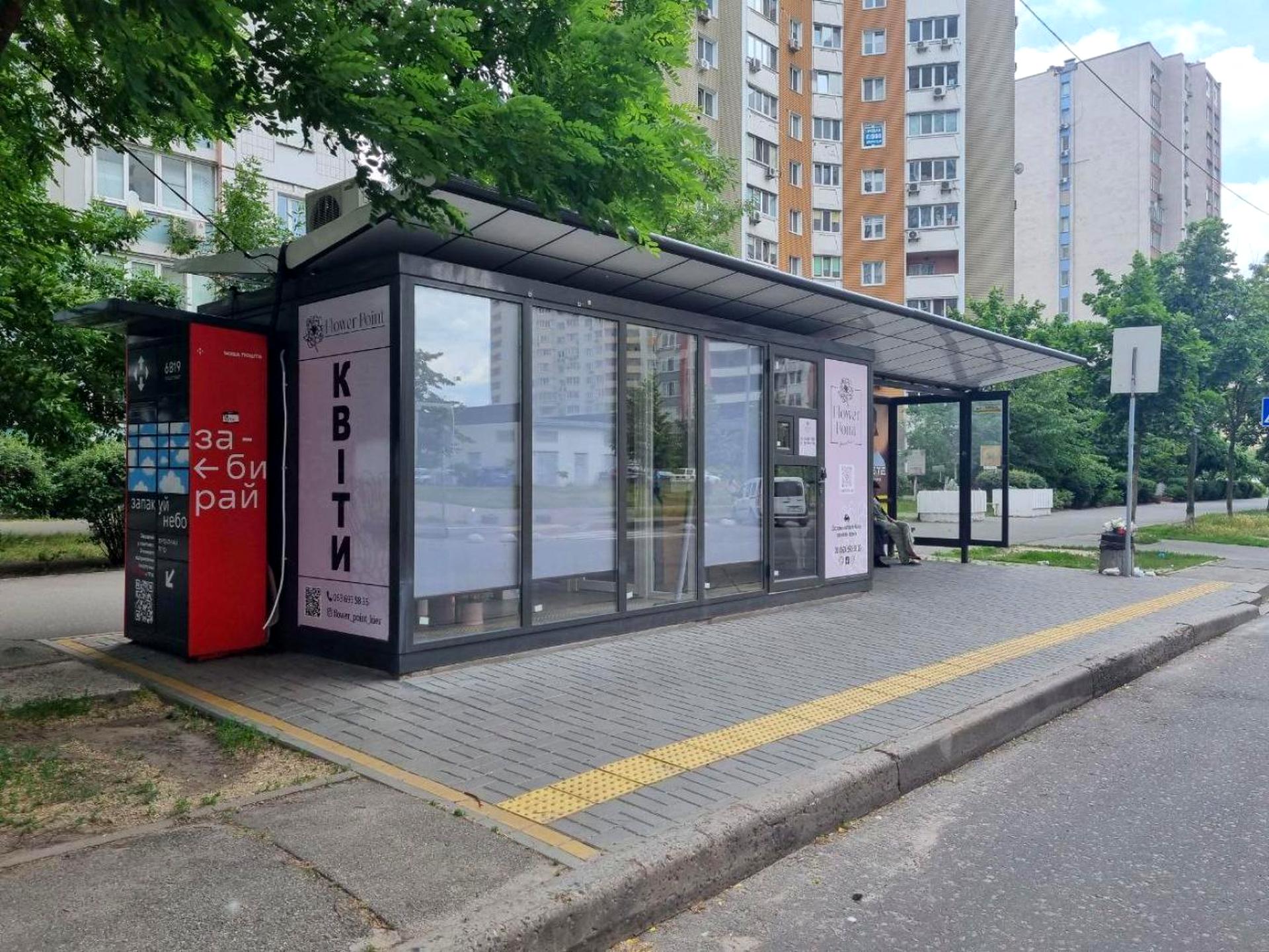 Торговий павільйон розміщений у складі сучасного зупинного комплексу, встановленого в межах офіційної інвестиційної програми КМДА. Конструкція виконана з якісних матеріалів, обладнана великими фасадними вітринами та окремою зоною очікування для пасажирів.