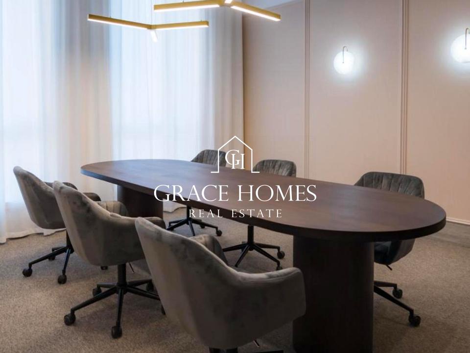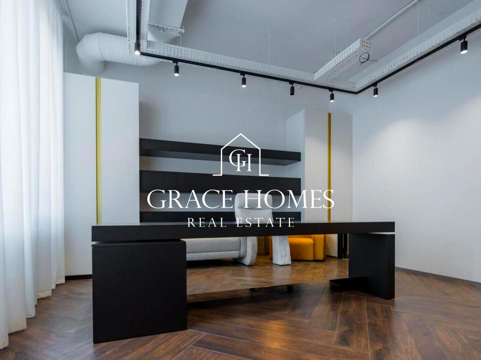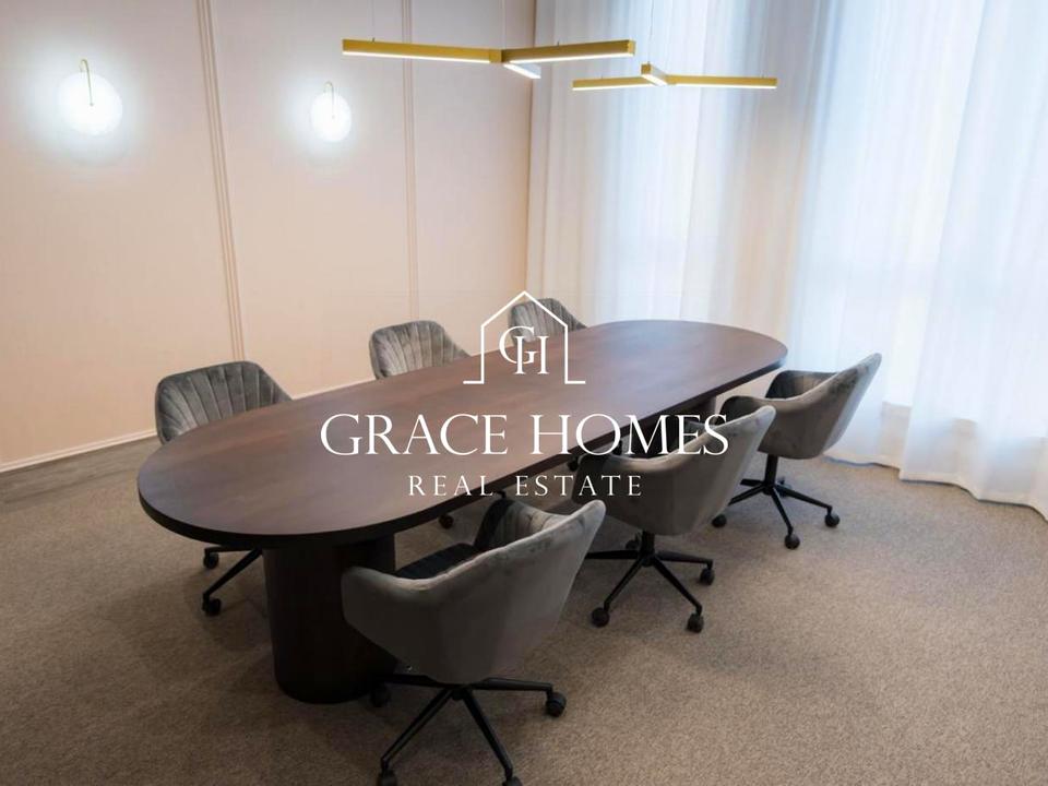 Просторий офіс із відчуттям масштабу та чітким функціональним зонуванням.