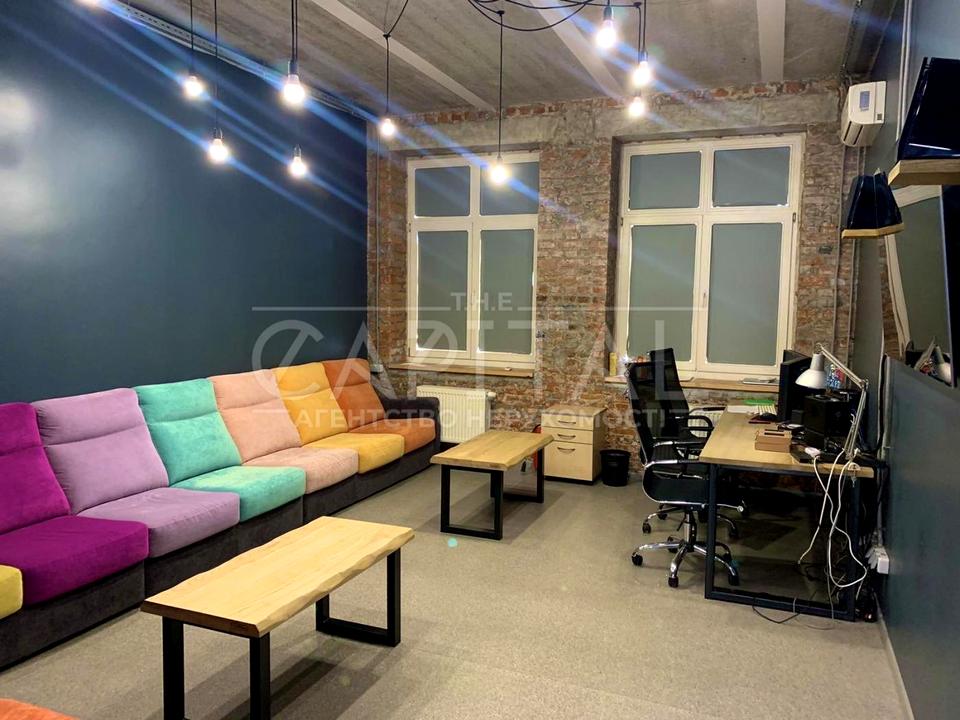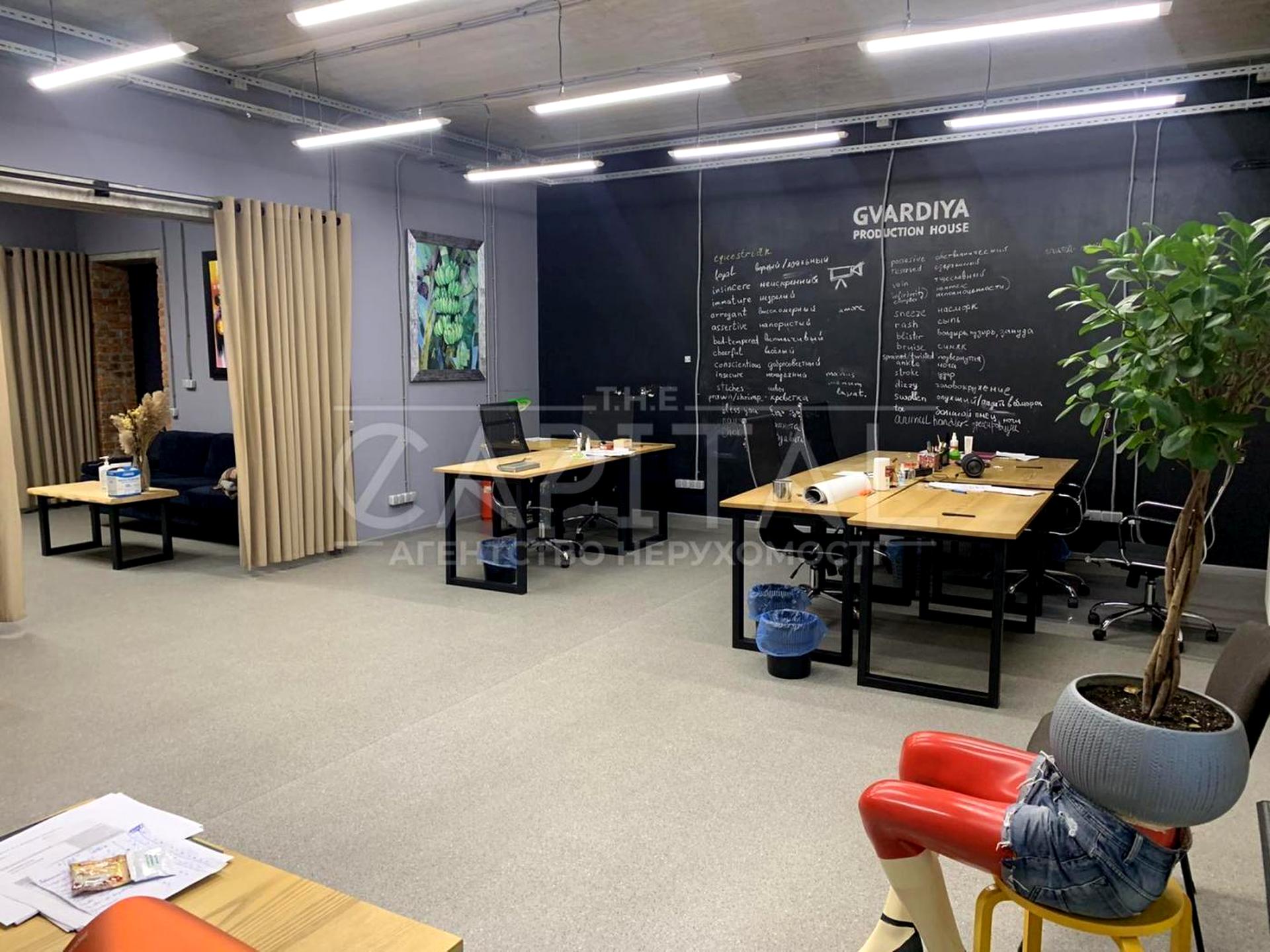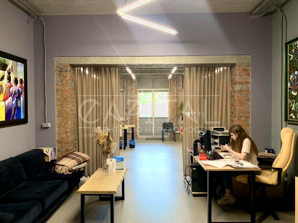 Офісна площа розташована на 1 поверсі п'яти поверхового будинку. Ремонт в стилі лофт.