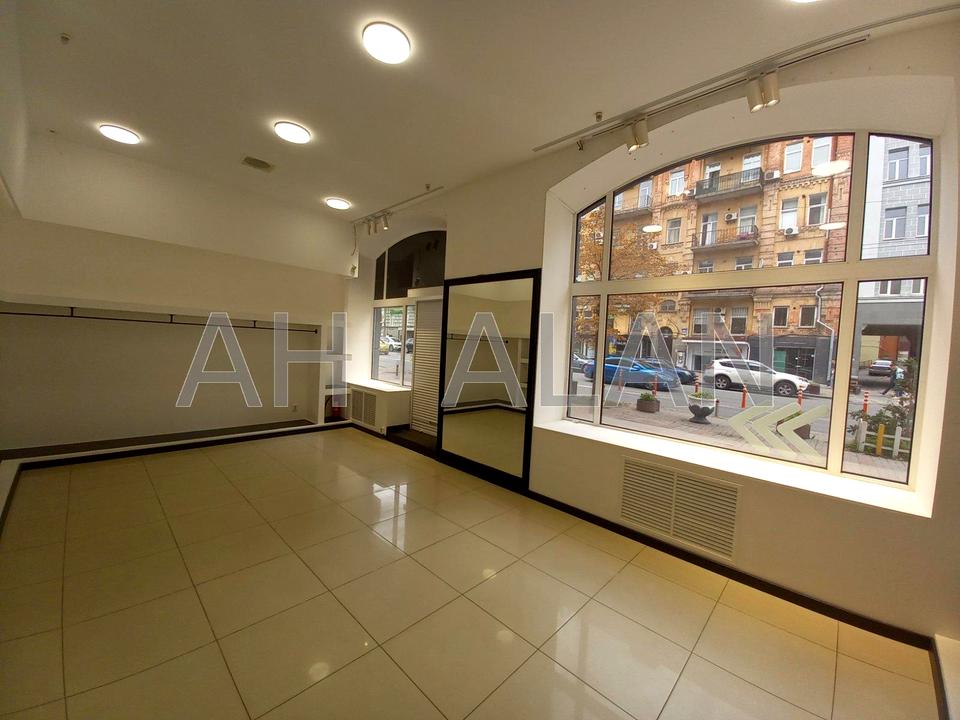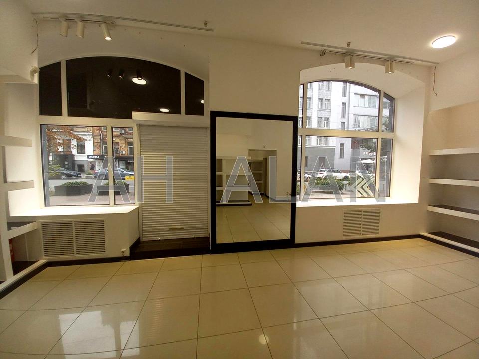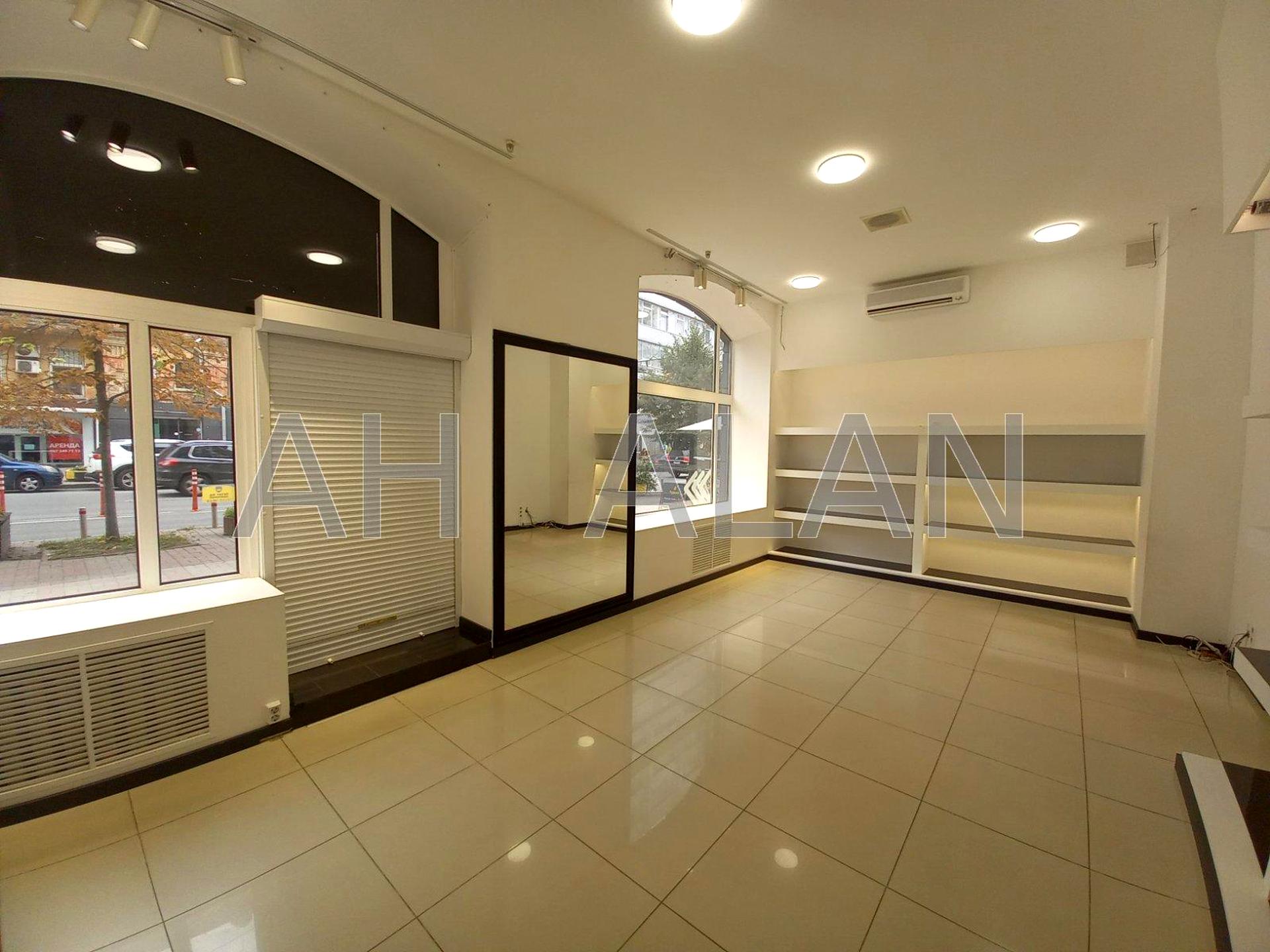 Оренда фасадного приміщення 122 м2 у Центрі на вул. Шота Руставелі. Перший поверх (торговий зал) та цоколь (службове приміщення зі складом). Два окремі входи: фасадний (з Шота Руставелі) та з двору. Планування: 2 торгових приміщення 37м2 та 23м2 та 2 службових 33м2 та 18м2. Заведено 75кВт, встановлені кондиціонери, є окремий вент канал, охоронна та пожежна сигналізації. Ремонт відповідає фото. Здається без меблів під будь-який вид діяльності. Додатково – комунальні послуги