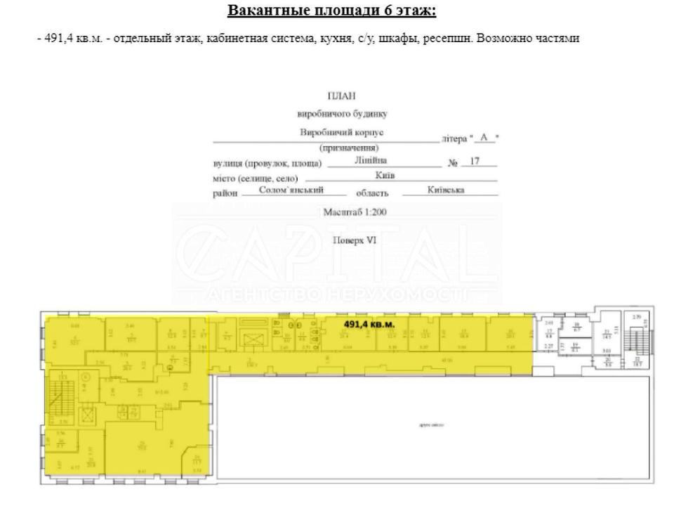 Об'єкт комерційної нерухомості, Клас B, Комплекс будівель, Офісне приміщення. Об'єкт на 6 поверсі, У будівлі 6 поверхів. Комісія за послуги 50 %