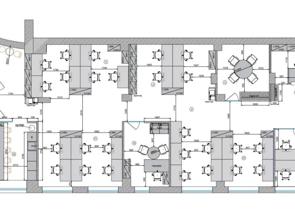 •Сучасний свіжий дизайнерський офісний ремонт та комунікації, LED-освітлення, розумне зонування, комбіноване планування …