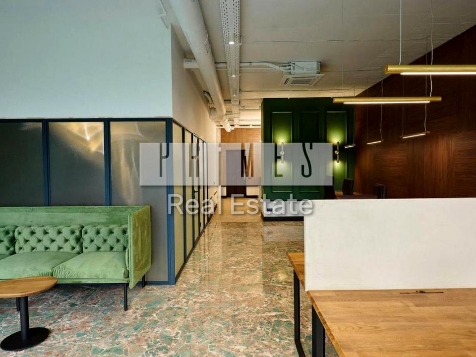 Офіс укомплектований меблями та технікою. Панорамні вікна відкривають краєвид на Печерськ. Стан приміщення: новий, сучасний, дизайнерський ремонт, із застосуванням сучасних технологій акустичного дизайну - офіс повністю знешумлений. Офіс повністю укомплектований сучасними якісними меблями. На кухні є вся потрібна для офісу техніка: холодильник, плита, мікрохвильова піч, чайник. Бойлер. Система кондиціювання, клімат-контроль.