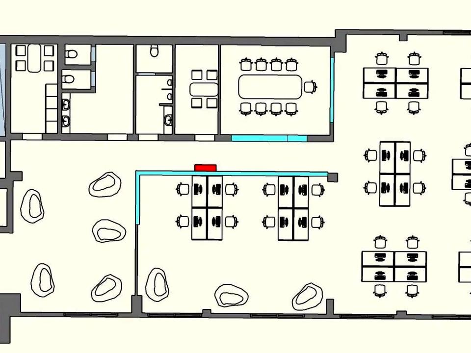 Функціональне планування: просторий open space для командної роботи, декілька окремих кабінетів для керівництва або переговорних кімнат.