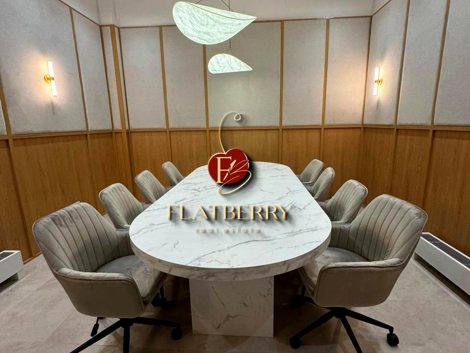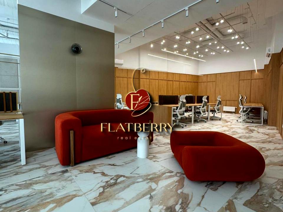 - Помещение состоит из open space - рабочего зала с 3 зонами, комнаты руководителя, переговорной, зоны ресепшн, кухни + лаунж зоны, 3 скайп зоны, санузла, гардеробной комнаты.