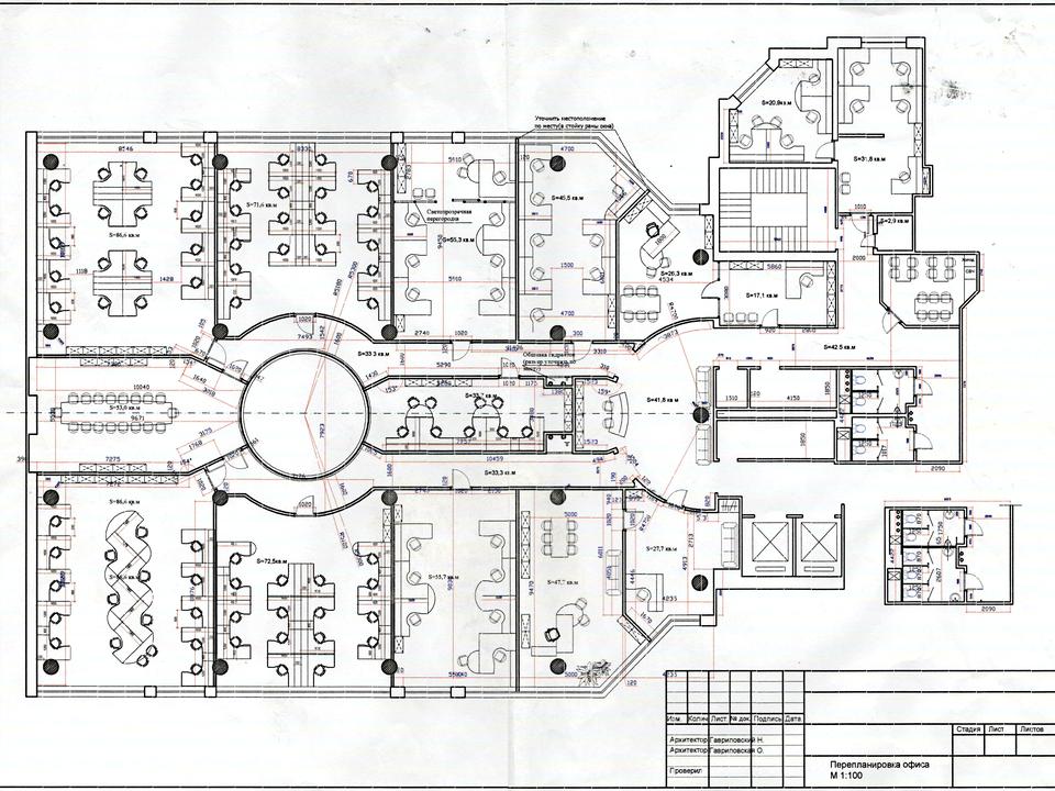 Офіс складається з 15 зручних кабінетів, площею від 20 м2 до 86 м2, в приміщенні можна комфортно розмістити 107 співробітників або 186 співробітників, якщо розмістити у форматі кол-центру. Три переговорні кімнати, повноцінна кухня-їдальня, два санвузли по 6 кабінок, зручна вбиральня.