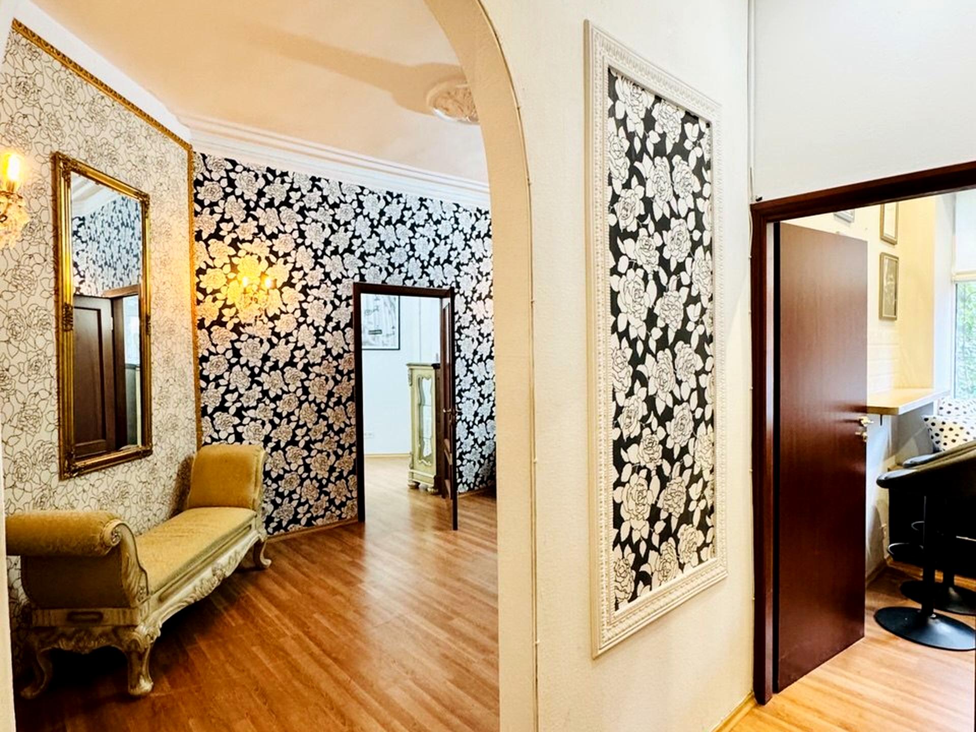 Пропонується в оренду унікальне приміщення у самому серці історичного Подолу, біля Андріївського узвозу. Локація — старовинний царський будинок навпроти Покровської церкви та ліцею №100. Перший високий поверх, лише одна квартира на поверсі, вікна виходять у тихий внутрішній двір.