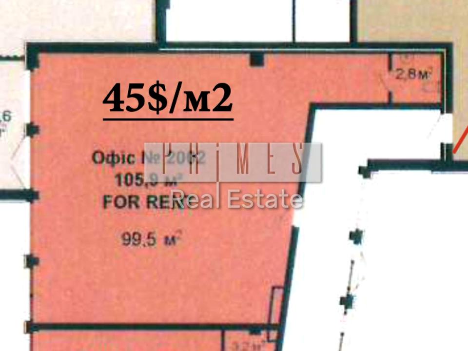 105.9 м² — достатньо місця для open-space на 10-15 робочих місць або для кабінетів керівництва + переговорна.