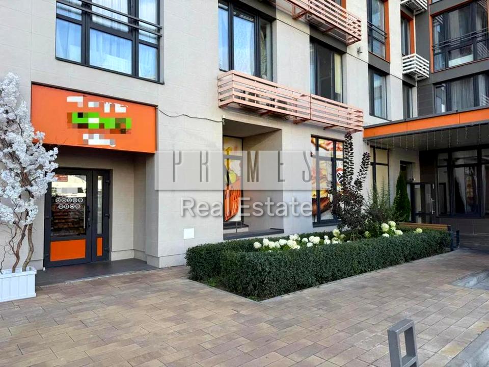 Здається в оренду фасадне нежитлове приміщення площею 81,7 м² у житловому комплексі «Seven», поруч із входом до під’їзду.
