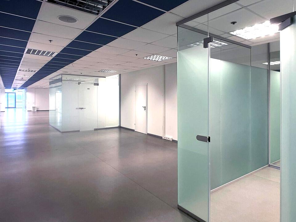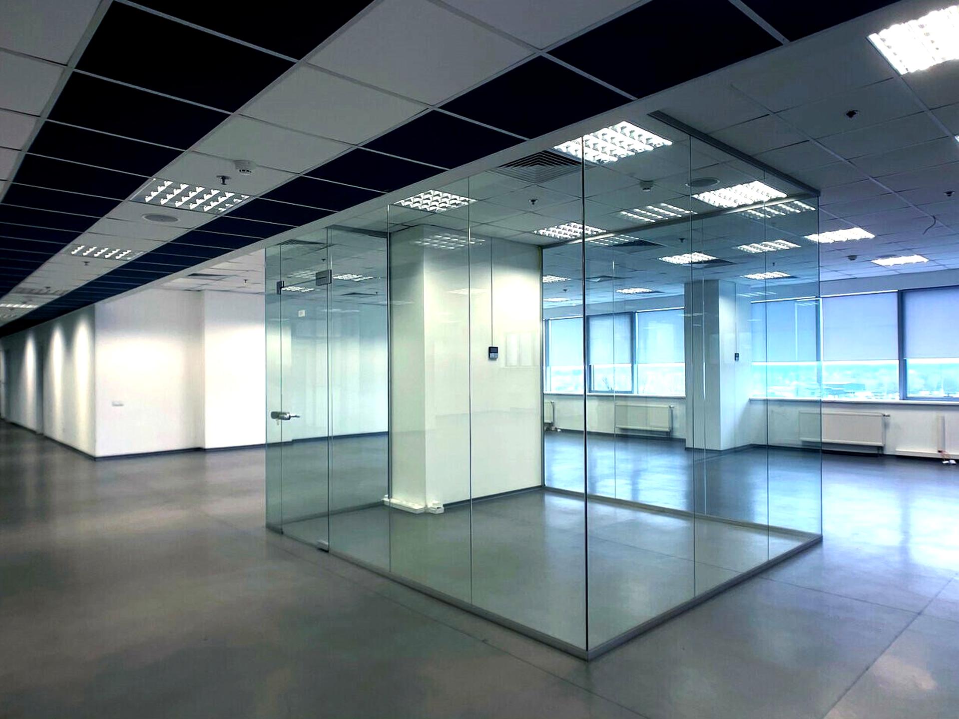 Приміщення розділені гіпсокартонними та скляними перегородками, тому можливе перепланування.