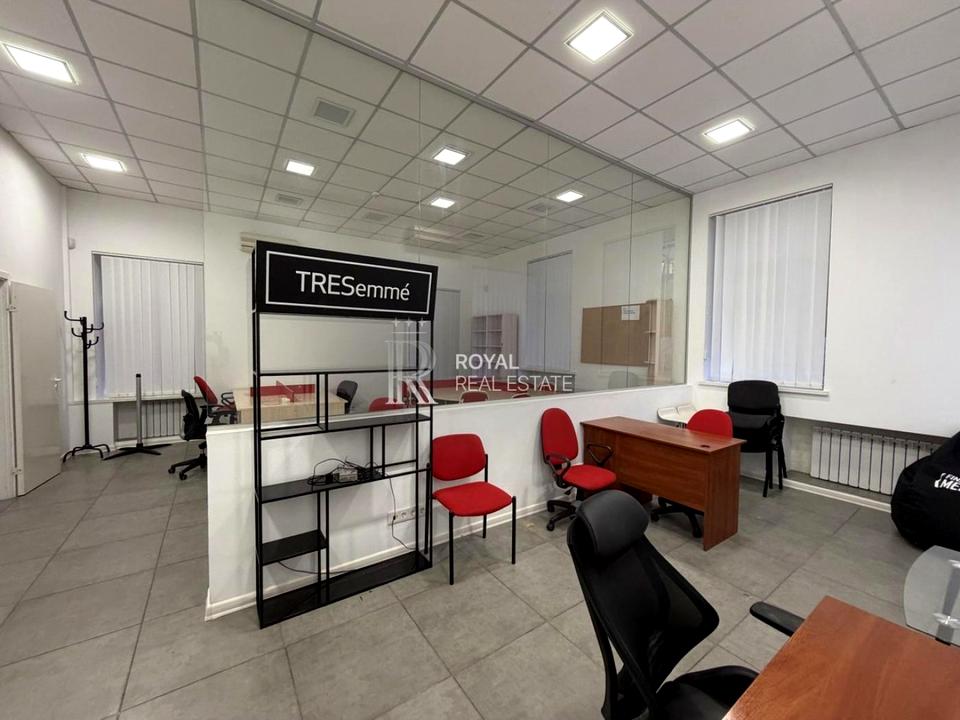 Пропонується в оренду функціональний офіс загальною площею 130 м². Зручне планування: 3 окремі кабінети, міні-кухня, 2 санвузли (один із душовою). Розташований на 1-му поверсі — зручно для співробітників та клієнтів.