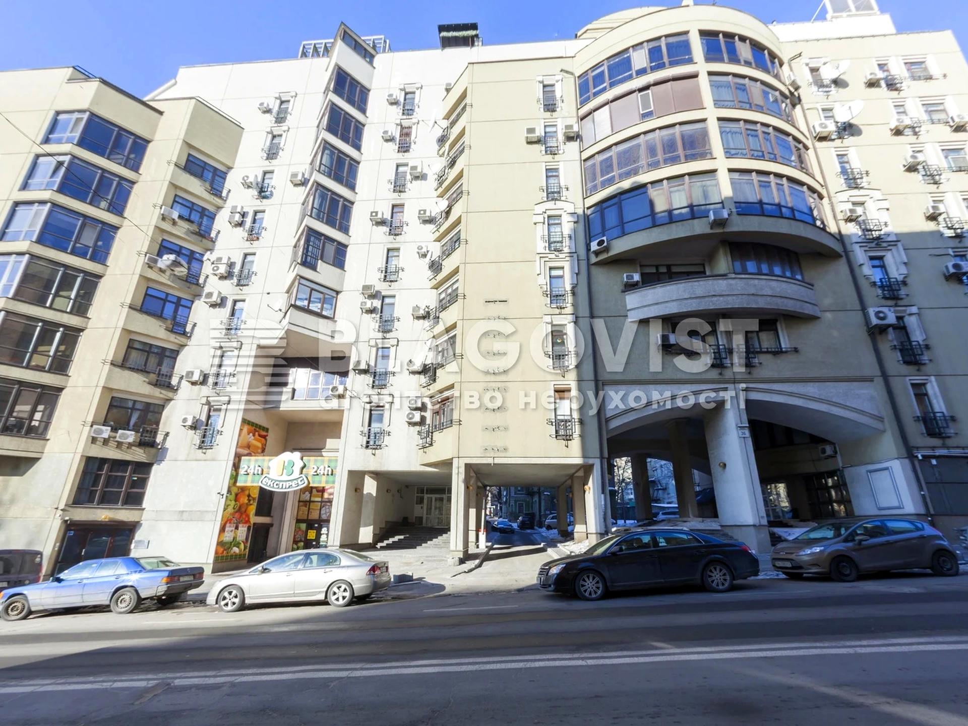 МАГАЗИН. ФАСАД. Продається нежитлове приміщення площею 552,3 м.кв. Розташоване на першому поверсі по вул. Бульварно-Кудрявська 36. Приміщення має три входи, оснащено системою кондиціонування, заведена електрична потужність 100 кВт. Пожежна сигналізація, охорона території, підземний паркінг.