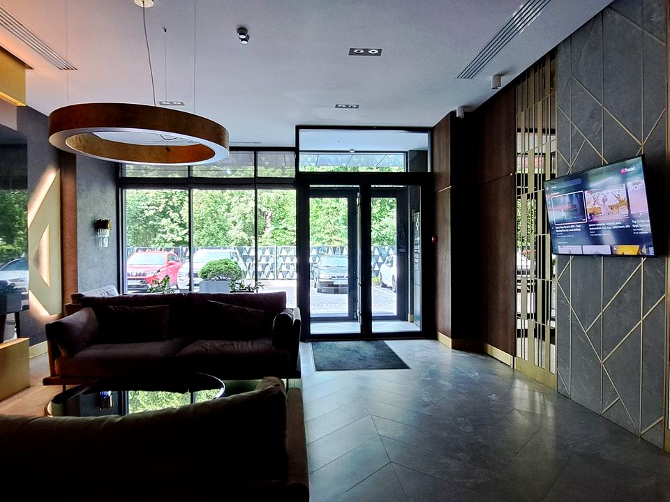 1 поверх – 89.6 м². Висота 3,7 м. Панорамні вікна. Окремий вхід та вхід з лобі будинку. Приміщення світле, має вільне планування.