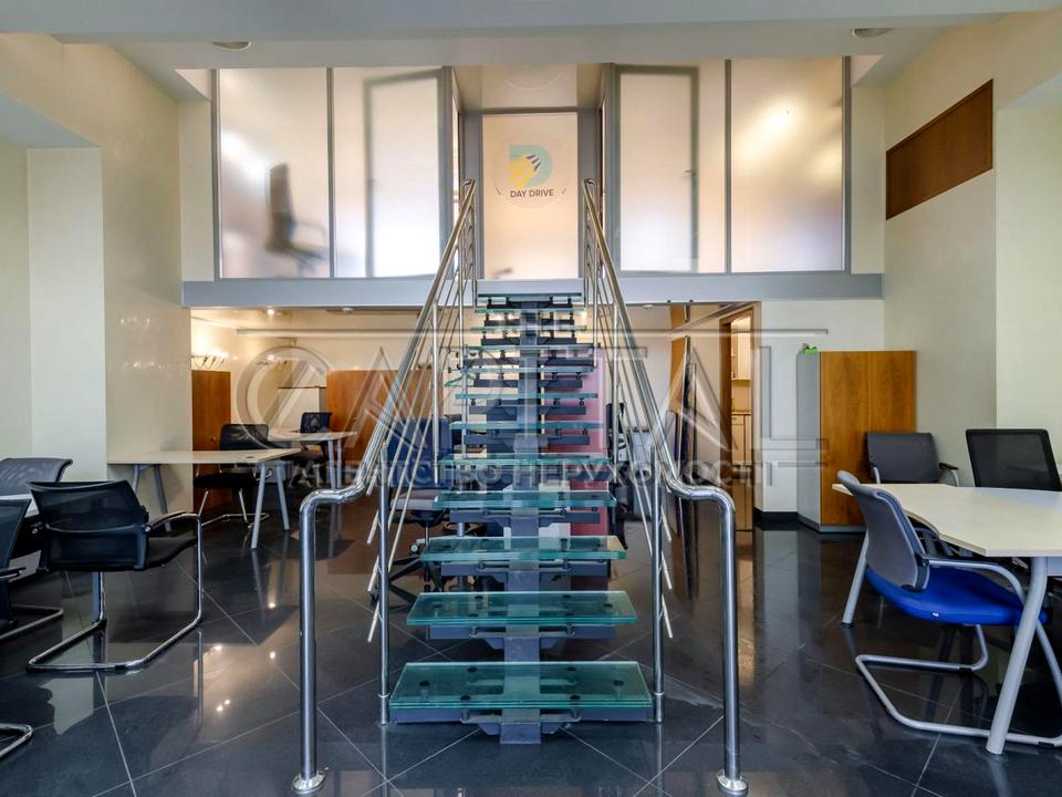 Офіс оформлений у сучасному стилі ма має високоякісний ремонт. Відкрита робоча зона площею 70 м2 доповнена переговорною кімнатою на 15 м2, двома окремими кабінетами та затишною кухнею. Офіс оснащений сучасною системою вентиляції та кондиціонування.