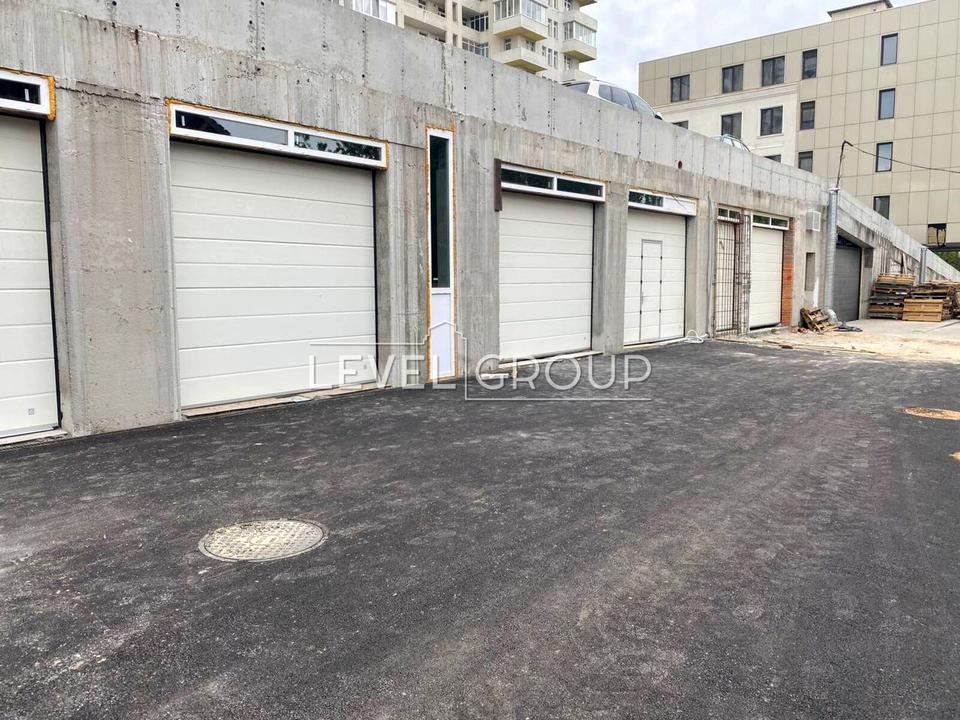 з двох боків приміщення в'їзд і виїзд на підземний паркунг(200 паркомісць) і вихід на наземну парковку(70 паркомісць)