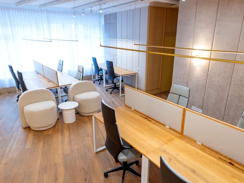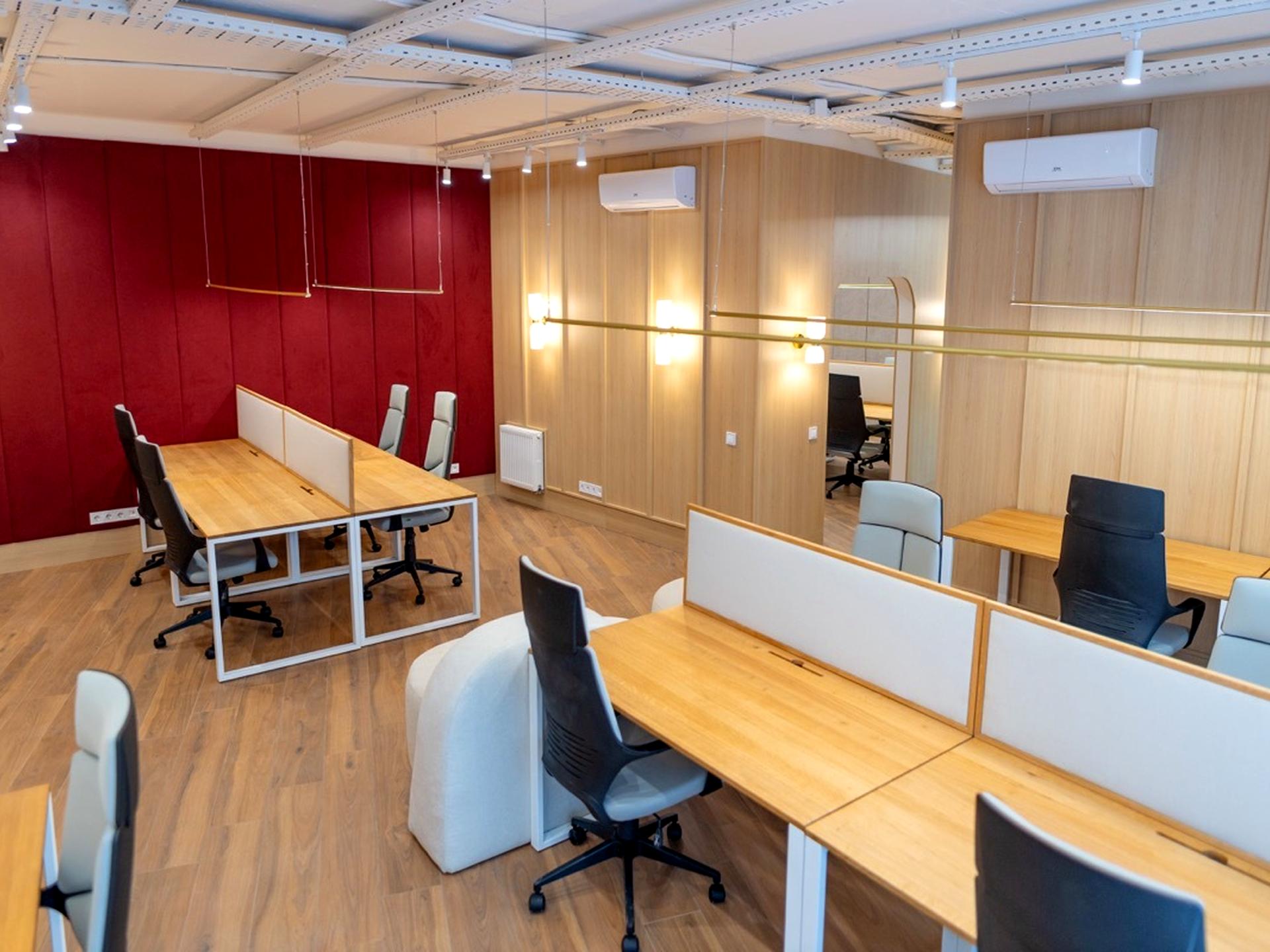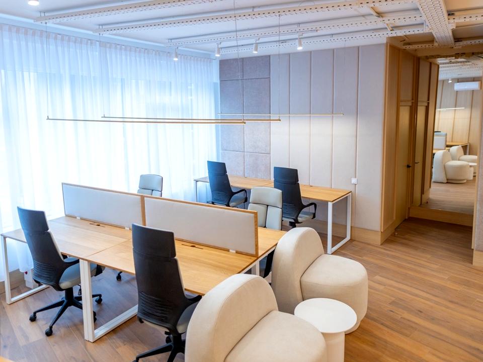 Офіс знаходиться на 2 високому поверсі з панорамними вікнами.