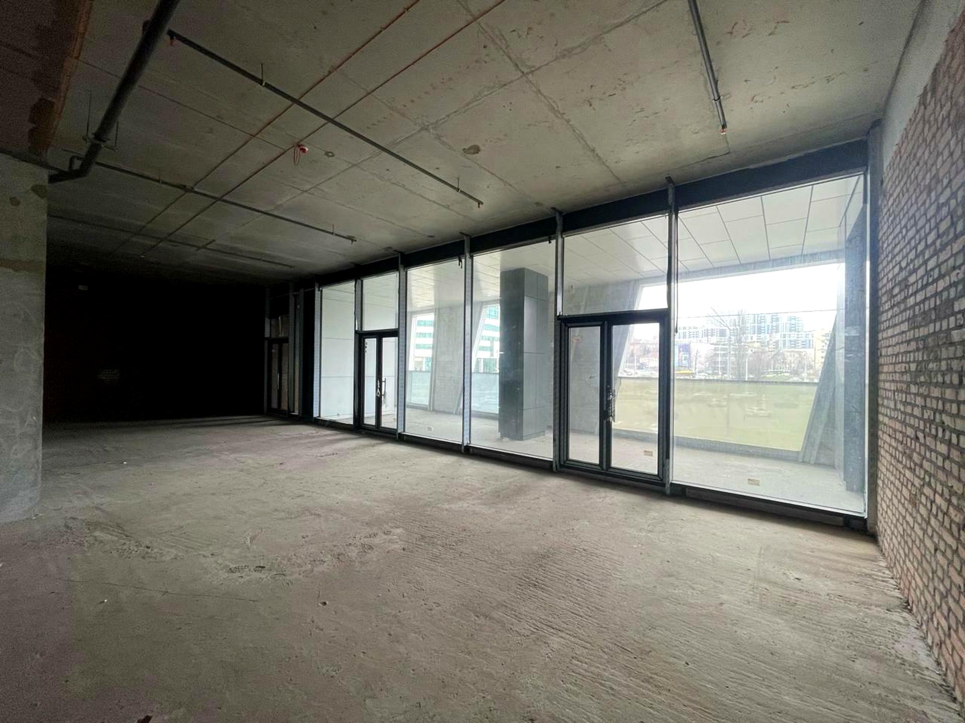 Приміщення має великі фасадні панорамні вікна, що виходять на проспект, — ідеальне рішення для магазину, ресторану, спортзалу, шоуруму або офісу представницького рівня.