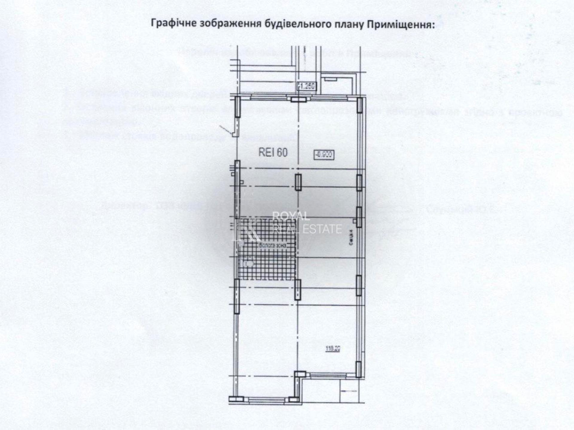 Фасадне комерційне приміщення розташоване на 1-му поверсі у 4-й секції. Загальна площа 118,2 м2.