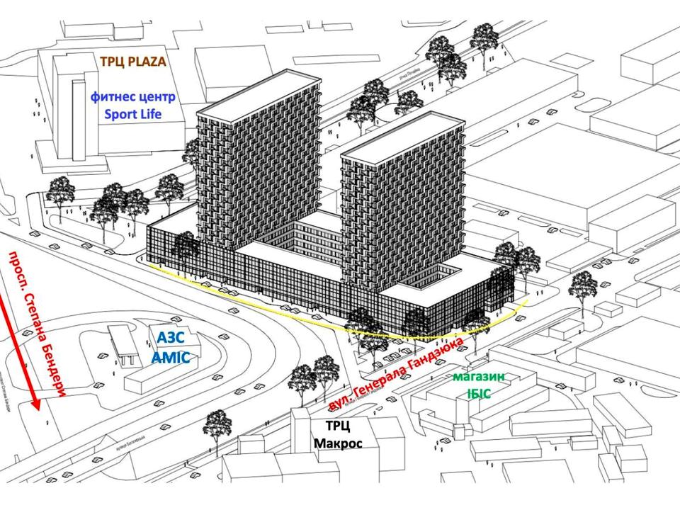 Житловий комплекс комфорт класу складається з двох будинків по 24 поверхи та стилобатної частини під будинками.