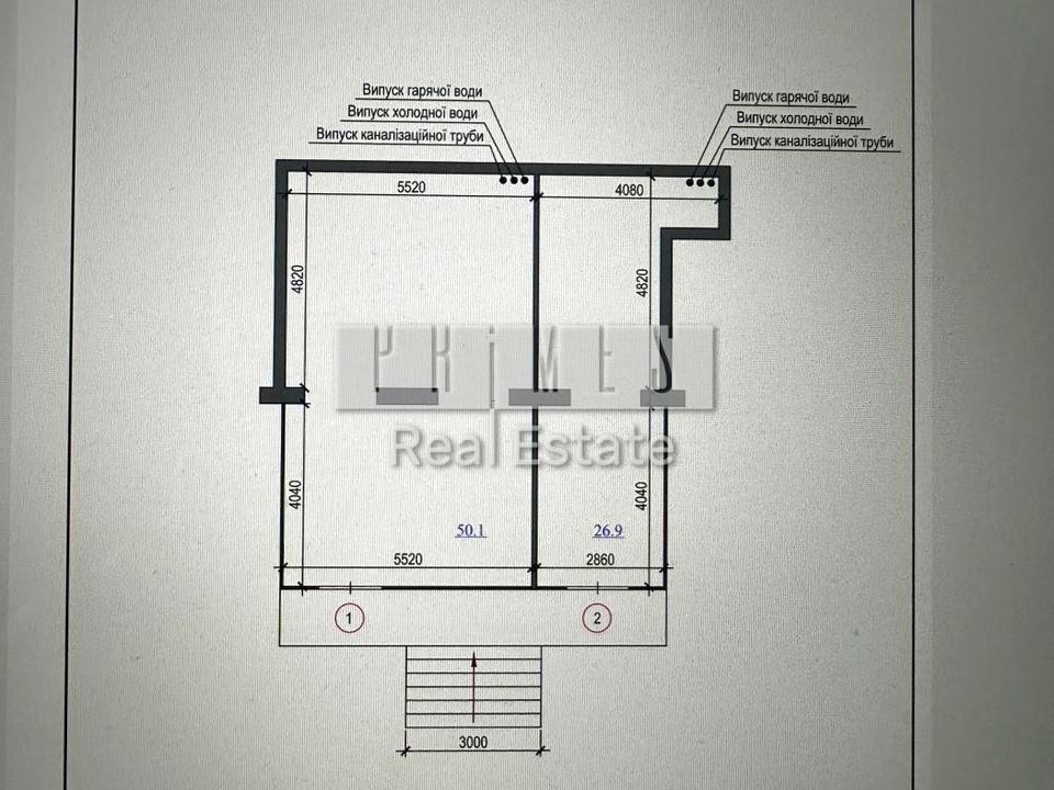 Приміщення поділено на 50,1м2 та 26,9м2