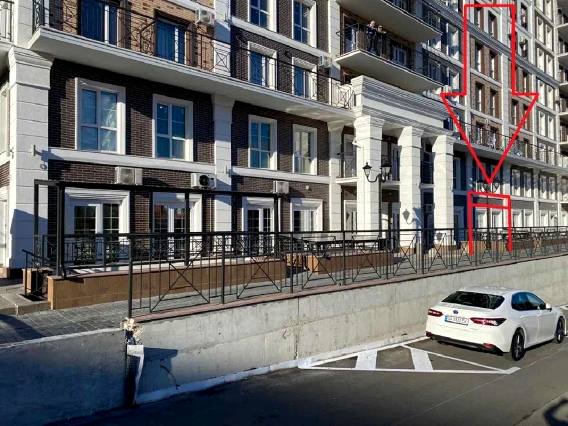 -Фасадне приміщення 45.32 кв.м, нежитловий фонд, окремий вхід, місце під велику вивіску, високі стелі Н=3,5 метра. Лічильники на воду електро, опалення (автономна котельня в комплексі). Літня тераса, перед приміщенням можна ставити столики. Приміщення розташоване в обжитому будинку "НЬЮКАСЛ" на 450 квартир.