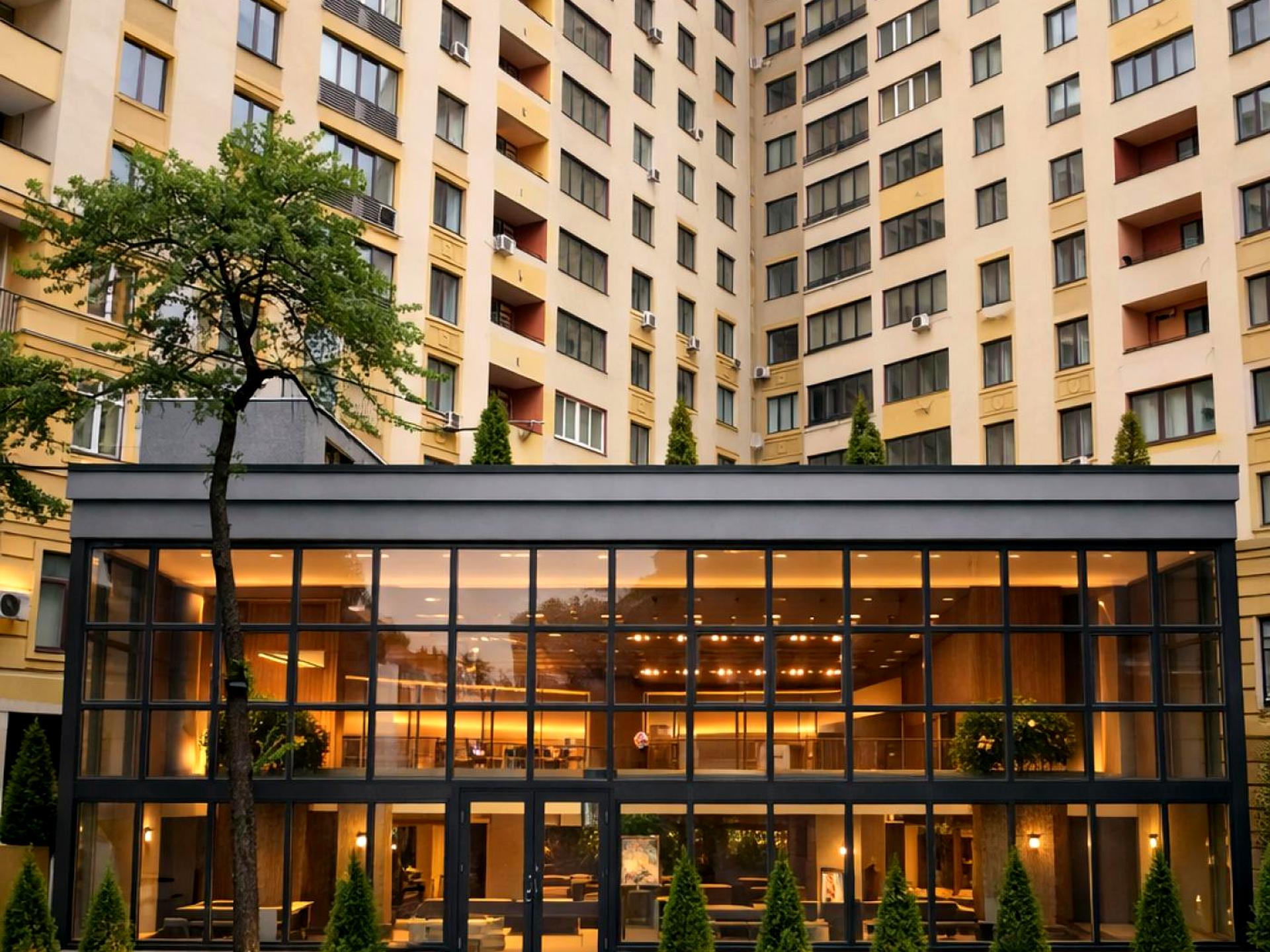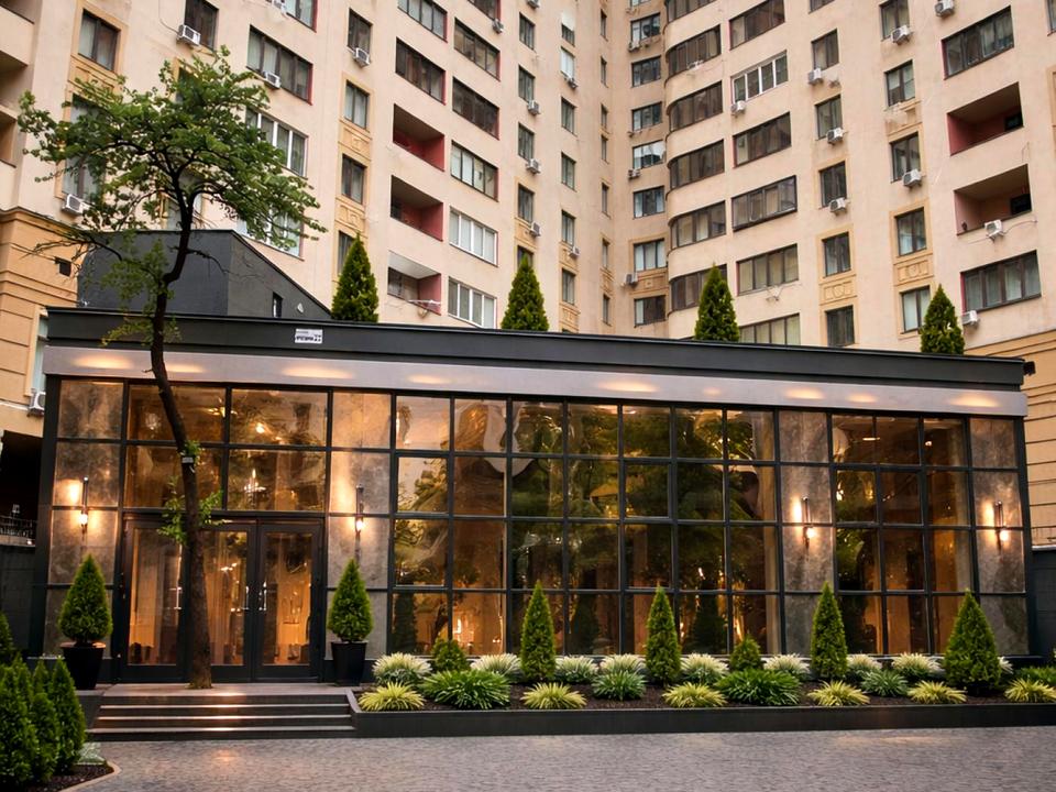 Будівля розташована у тихому місці, всього 50 м від вул. Чорновола, у пішій доступності до метро «Лук’янівська» (до 15 хвилин).