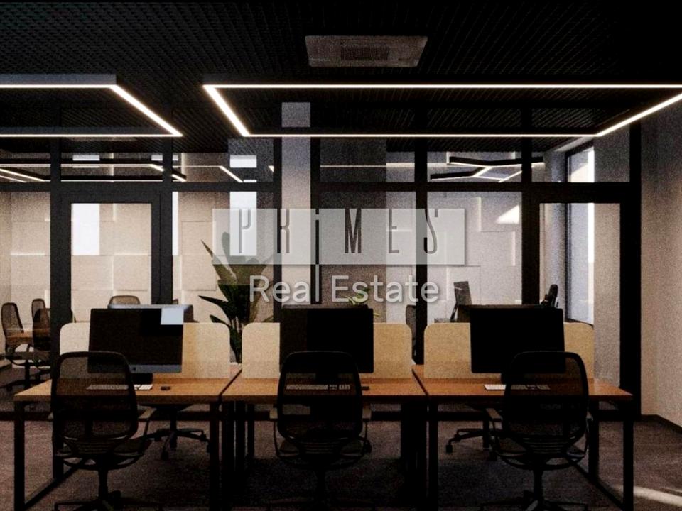Опенспейс у центральній частині та два окремі кабінети, кухня, два санвузли.