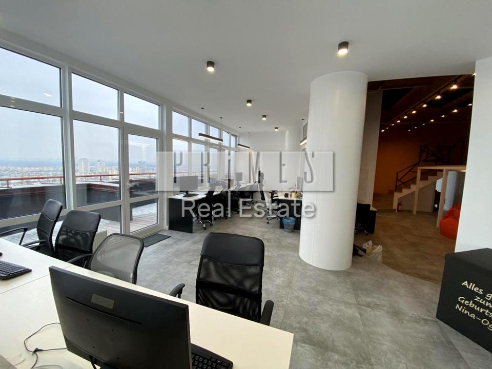 #17137 Приміщення просторе світле, площею 177 метрів, плюс велика тераса 70 метрів. З тераси відкривається неймовірний вигляд. Офіс з якісним ремонтом, обладнаний меблями. №35 посадочних місць. Окремо просторий кабінет директора. Висота стелі 3,5 метра. Окремий вхід. Окремий фасадний ліфт, що йде до 23 поверху. . У будинку є генератор. Окрема серверна кімната, 3 кондиціонери, 2 санвузли, душ.